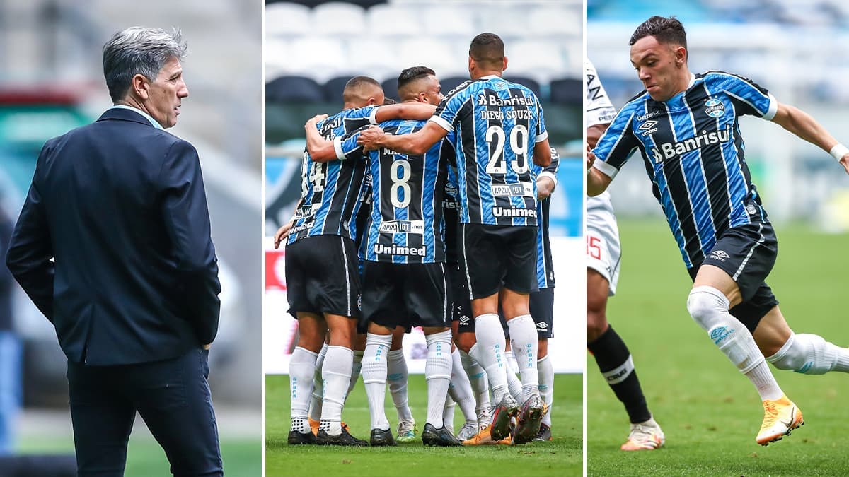 O atacante Pepê fez mais um grande jogo com a camisa do Grêmio, mas sem balançar as redes. Antes de sair de campo, o atacante quase marcou um golaço por cobertura e, claro, Renato teve que falar do seu DVD para o garoto.